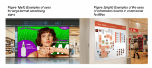 The UJV200 features a single high-density, high-resolution print head based on the same “330 Engine” used in our flagship printers. With precise ink control, it delivers smooth portrait images with minimal graininess and uniform solid colors with no streaking. From portrait graphics that naturally capture even the texture of skin to solid color areas that look beautiful even across large areas, it vividly and accurately reproduces the design intent in large-format advertising signs (Fig. 1). Furthermore, because it can render fine lines and small text with sharp clarity, it delivers outstanding performance in applications requiring high visibility and accuracy, such as information board in commercial facilities (Fig. 2).