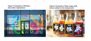 Furthermore, by combining white and clear inks, the system supports up to three-layer printing. This enables value-added applications that combine design and functionality, such as store window decorations (Fig. 4) and stickers and labels (Fig. 5).